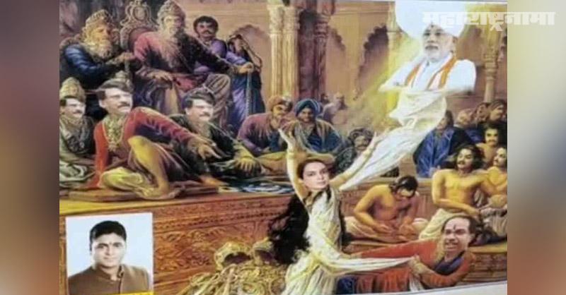 News English Summary: Posters depicting Bollywood actress Kangana Ranaut as ‘Draupadi’, a pivotal character in the Hindu mythology ‘Mahabharata’, were put up in Uttar Pradesh’s Varanasi on Thursday. The posters showed ‘cheerharan’ of Kangana by Maharashtra Chief Minister Uddhav Thackeray, while Prime Minister Narendra Modi was depicted as Lord Krishna, protecting the national-winning actress.