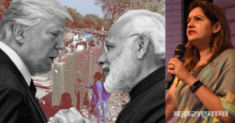 त्यावर ट्विट करताना प्रियांका चतुर्वेदी यांनी म्हटलं आहे की, “अतिथि देवो भव: को ध्यान में रखते हुए हमारी देश की सरकार ने आज आपके स्वागत में लम्बी और ऊँची दीवार बनाई है, जैसे आपको उत्कृष्ट व्यू मिले और गरीब जनता से रूबरू ना होना पड़े।