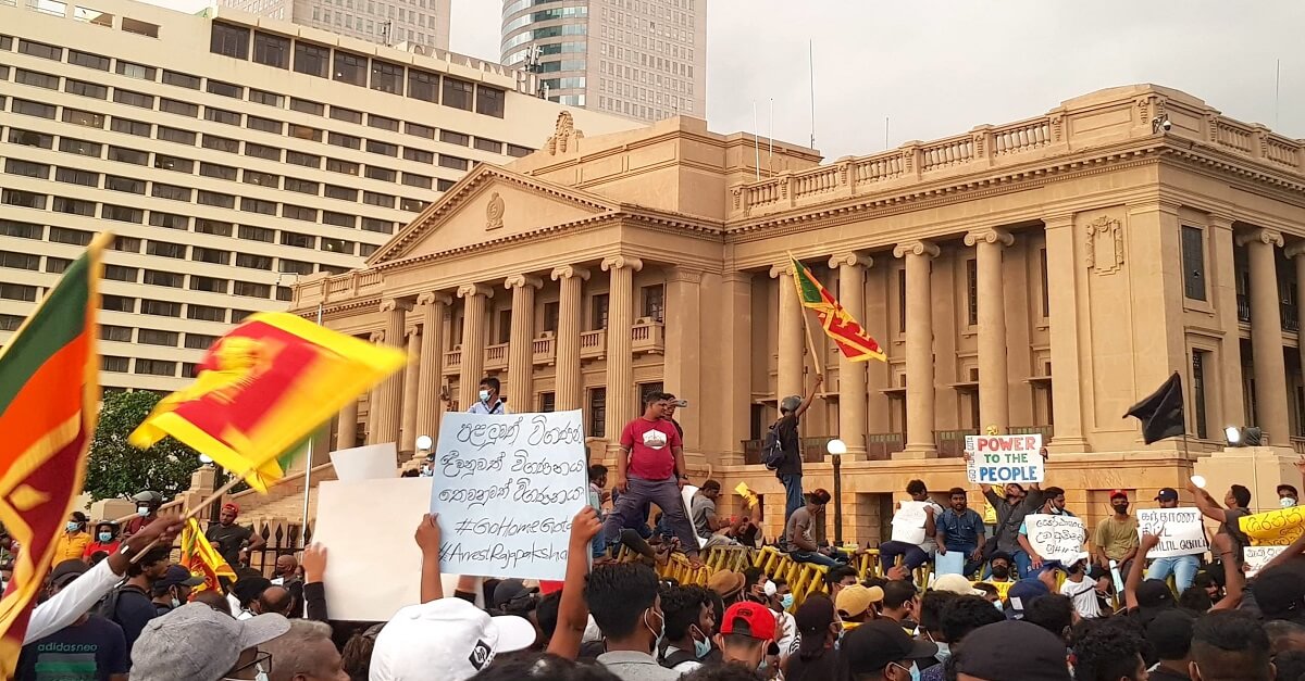 श्रीलंकेत शनिवारी मध्य कोलंबोच्या अतिसुरक्षित किल्ला परिसरातील त्यांच्या (राष्ट्राध्यक्षांच्या) अधिकृत निवासस्थानी मोठ्या संख्येने निदर्शक घुसले आणि त्यांनी अडथळे दूर केले आणि राष्ट्राध्यक्ष गोताबाया राजपक्षे यांच्या राजीनाम्याची मागणी केली. सुरक्षा कर्मचारी आणि निदर्शकांमध्ये झालेल्या चकमकीत दोन पोलिसांसह किमान 30 जण जखमी झाले.