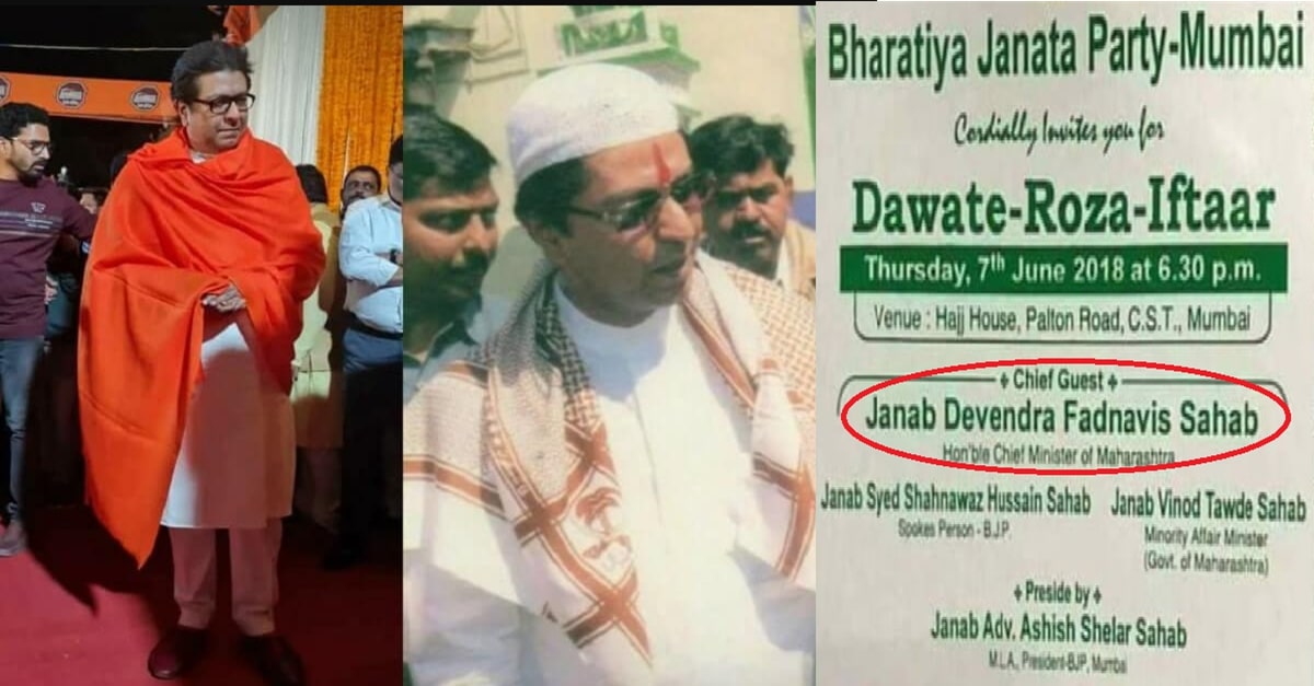 दरम्यान शिवसेनेवर टीका केली असताना आता सोशल मीडियावर दावत-रोझा-इफ्तारचं एक पोस्टर व्हायरल झालं आहे. यामध्ये विरोधी पक्षनेते आणि तत्कालीन मुख्यमंत्री देवेंद्र फडणवीस यांच्या नावापुढे जनाब शब्द आहे. याशिवाय पोस्टरवर भारतीय जनता पक्षाच्या इतर अनेक नेत्यांची नावं आहेत. त्यांच्या नावांपुढेही जनाब असा उल्लेख करण्यात आला आहे. ट्विटर, फेसबुकवर या पोस्टरचा फोटो व्हायरल झाला आहे.