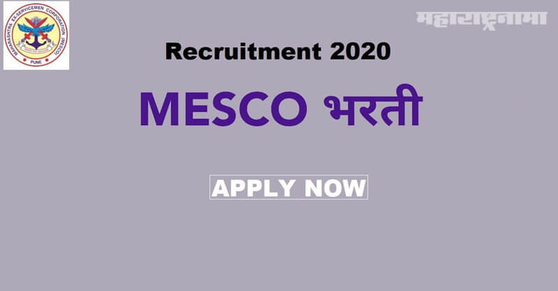 Maharashtra Ex-Serviceman Corporation Ltd Recruitment 2020. MESCO Pune Bharti 2020. Maharashtra Ex-Serviceman Corporation Ltd has published the short recruitment notification for 36 Posts. Eligible and interested candidates may send their application through Email / Post on or before 03rd Dec 2020 for MESCO Pune Bharti. More details about age limit, essential qualification and how to apply application for MESCO Recruitment 2019 is shared in below article. Free Job Alert.