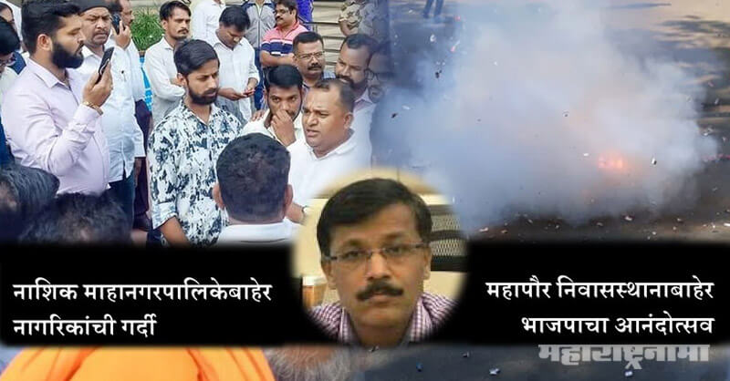 काल सुट्टी असताना सुद्धा तुकाराम मुंढेंची बदली कशी करण्यात आली? असा थेट सवाल उपस्थित नागरीकांनी विचारला. तर भारतीय जनता पक्षाचं सरकार मुजोर आहे, अशा तिखट शब्दांत उपस्थित नागरीकांनी भाजपाविरोधात रोष व्यक्त केला आहे. त्यात आप पक्षाच्या कार्यकर्त्यांचा सुद्धा समावेश होता. असं सर्व सकाळपासूनच वातावरण असताना दुसरीकडे तुकाराम मुंढेंची बदली झाल्याची बातमी कानावर येथेच स्थानिक भाजपाच्या कार्यकर्त्यांनी आनंदोत्सव साजरा केला. हद्द म्हणजे सकाळी नाशिकच्या महापौर निवासस्थानी रामायण बंगला येथे भारतीय जनता पक्षाच्या कार्यकर्त्यांनी फटाके फोडून दिवाळी साजरी केली.