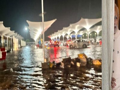 Gujarat Airport Video | मोदींचा फिल्मी गुजरात मॉडेल? अहमदाबाद एअरपोर्टची नदी झाली, सुटाबुटातील प्रवाशांचे बूट हातात