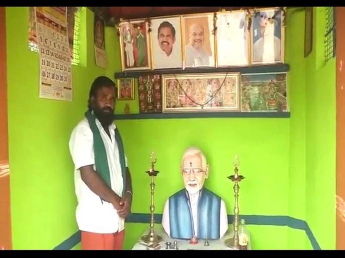 चेन्नई: तामिळनाडूच्या त्रिचीमधील भारतीय जनता पक्षाचा कार्यकर्ता असणाऱ्या पी. शंकर यांनी पंतप्रधान नरेंद्र मोदींवरील प्रेमापोटी आपण हे मंदिर बांधल्याचे म्हटलं आहे. येथील इराकुडी गावामध्ये हे छोट्या आकाराचे मंदिर बांधण्यात आलं आहे. हे मंदिर आता पंचक्रोषीमध्ये ‘नमो मंदिर’ नावाने लोकप्रिय झालं आहे. आजूबाजूच्या गावांमधून अनेकजण या मंदिरामध्ये असणाऱ्या मोदींच्या मुर्तीचे दर्शन घेण्यासाठी येऊ लागले आहेत.