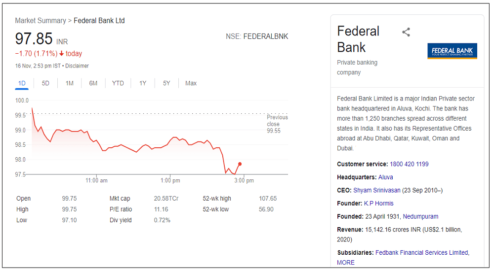 सुमीत बगाडिया म्हणतात की, हा स्टॉक रु. 92 च्या स्टॉप लॉससह रु. 110 च्या लक्ष्यासाठी खरेदी करता येईल. SMC ग्लोबल सिक्युरिटीजचे सौरभ जैन म्हणतात की फेडरल बँक ही दक्षिण भारतातील मध्यम आकाराची बँक आहे. बँकेने नुकतेच जाहीर केले आहे की पुढील दोन वर्षात मालमत्तेवरील परतावा सध्याच्या 0.92 टक्क्यांवरून 1.25 टक्क्यांपर्यंत वाढेल. सप्टेंबरच्या तिमाहीत बँकेच्या निधी खर्चातही घट झाली आहे. जे बँकेच्या भविष्यातील व्यवसायासाठी चांगले लक्षण आहे.