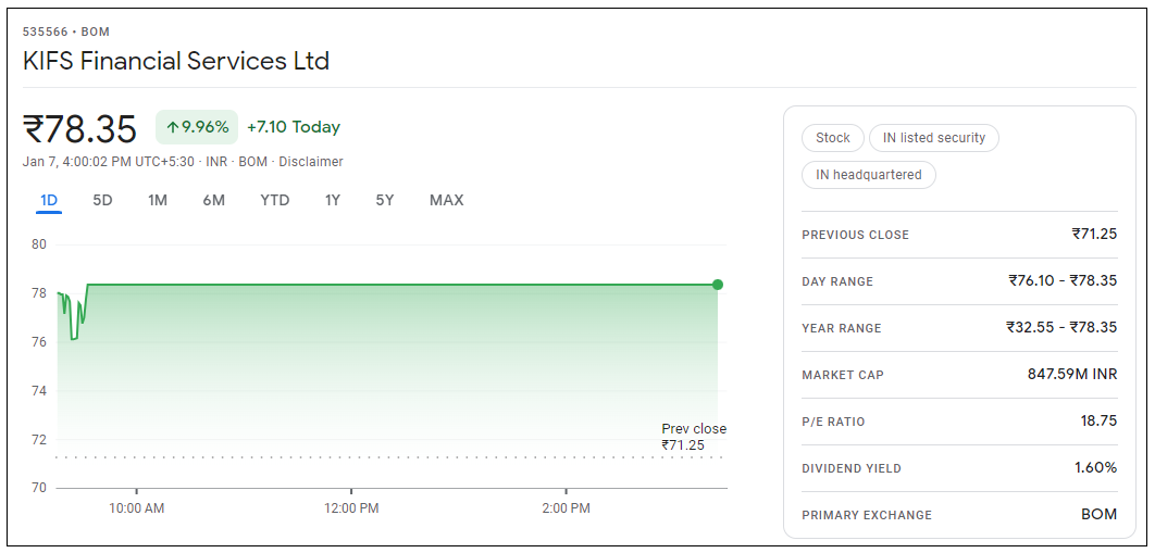 KIFS Financial Services Share Price :