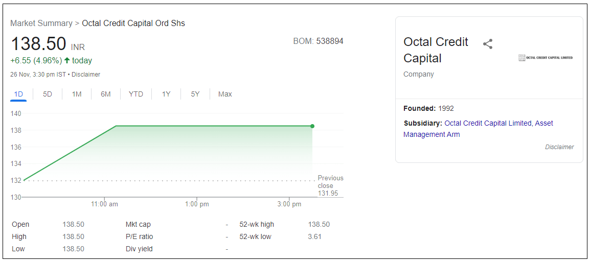 Multibagger Stock. If you get the information, do the research and then invest the money in a good company you have chosen, you can get huge profits. Octal Credit Capital Ord Shs is similar company whose shares have given 139.05% return in 1 month :
