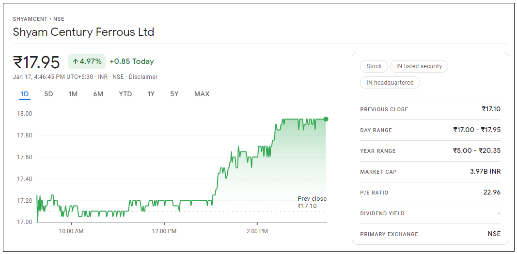 Penny Stock of Shyam Century Ferrous Ltd had gained about Rs 15.35 per share last year. If you want to know this benefit in the form of return, then it is 300% :