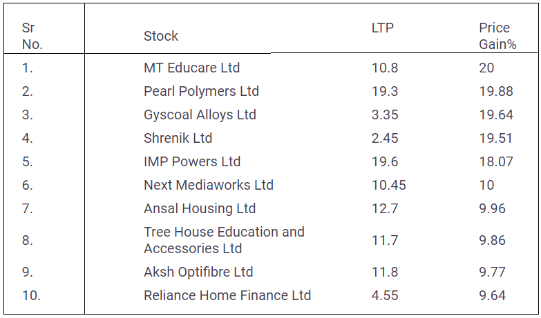 Penny Stocks Return and Here is the list of penny stock that gained up to 20% on a closing basis on Tuesday, December 14, 2021 :