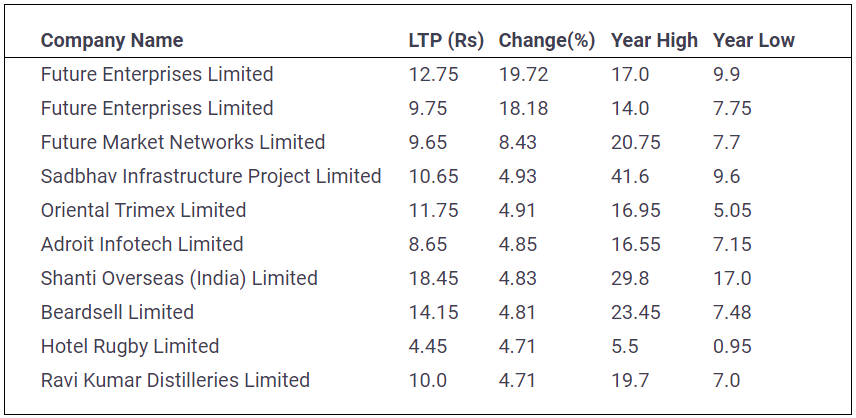 Penny Stocks Return Following Table Shows Penny Stocks That Gained Most. The overall market today was in favour of advances :
