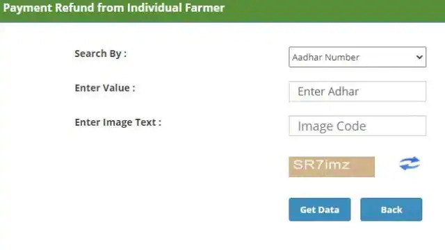 ३. यानंतर आधार क्रमांक, मोबाइल क्रमांक किंवा बँक खाते क्रमांक टाका. इमेज टेक्स्ट टाइप करा आणि Get Data वर क्लिक करा.