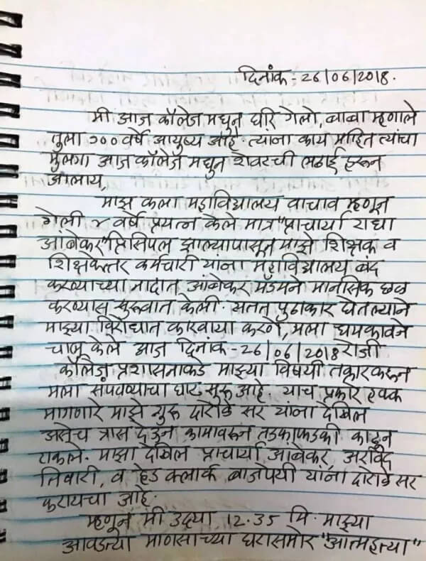 मुंबई : रहेजा कॉलेजमधील कला विषयाचा शिक्षक असलेल्या हा तरुण, रहेजा कॉलेज प्रशासनाने बंद केलेला कला विभाग पुन्हा सुरु करण्यासाठी मागील ४ वर्षांपासून एकाकी लढा देत होता. कॉलेज प्रशासनातील संबंधित अधिकाऱ्यांकडे अनेक वेळा तक्रार करुन सुद्धा ढिम्म प्रशासन काहीच हालचाल करत नसल्याची या तरुणाचं तक्रार आहे.