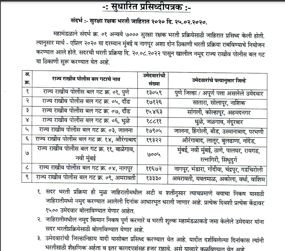 नोकरी ठिकाण : संपूर्ण महाराष्ट्रात